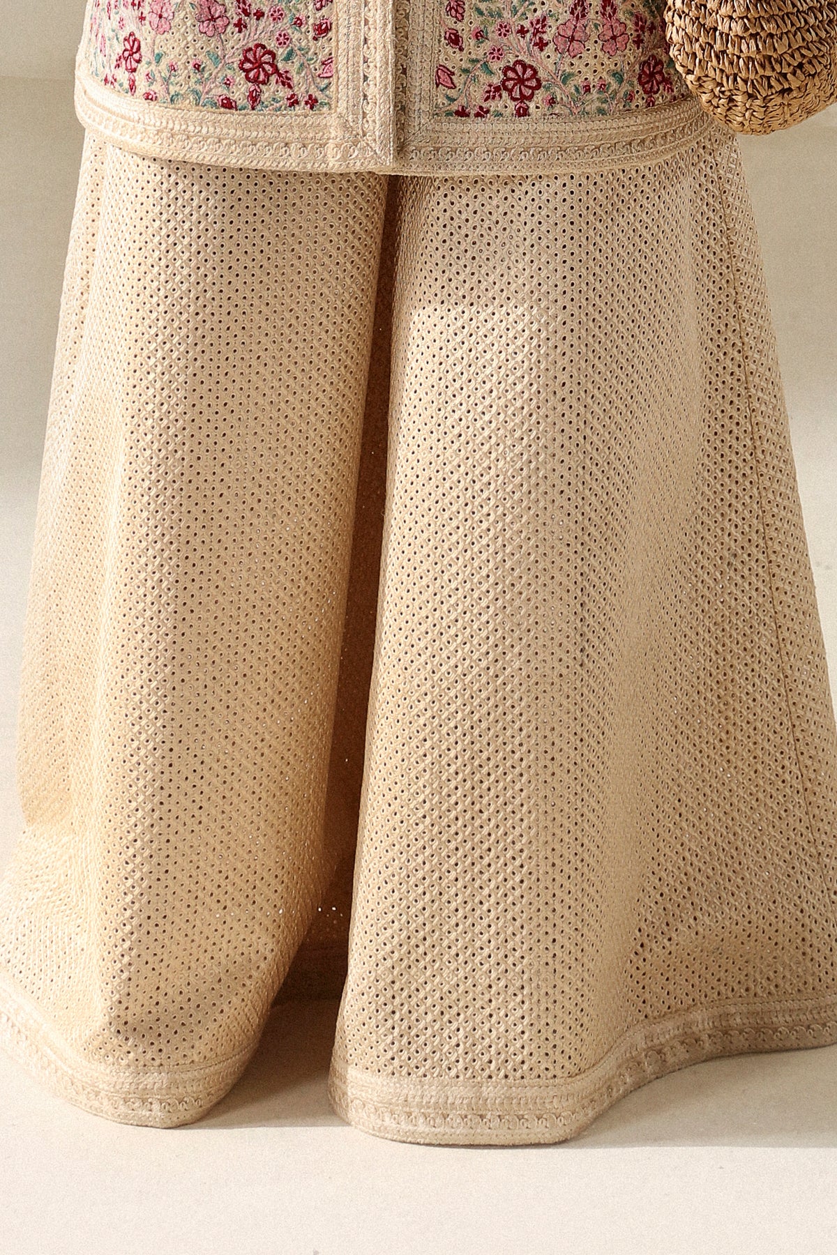 Introducing ‘Lara’: luxurious latte-hued wide-leg trousers radiating timeless elegance. The subtle sheen of the fabric enhances its sophistication, while the flowing design blends classic charm with modern style—perfect for any formal occasion.